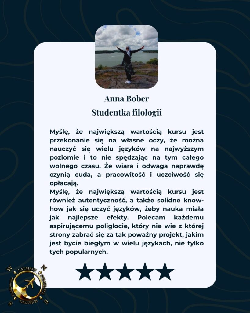 Skierowany do osób, które pragną pogłębić swoją wiedzę i osiągnąć biegłość językową, korzystając z zaawansowanych metod i unikalnych materiałów.