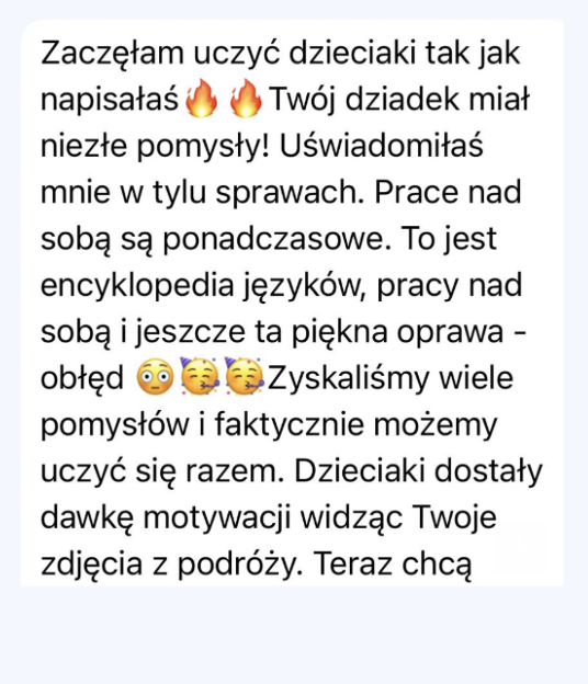 • Prace pisemne (przez wszystkie poziomy nauki): Praktyczne zadania, które poprawią Twoje umiejętności pisania i myślenia w nowym języku. Wartość: bezcenne
